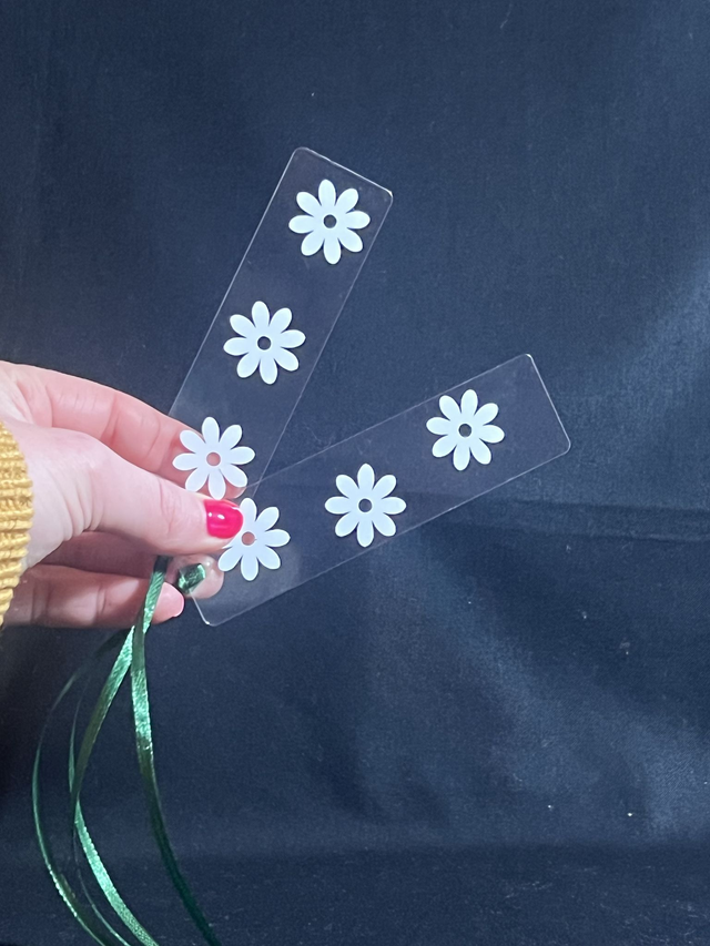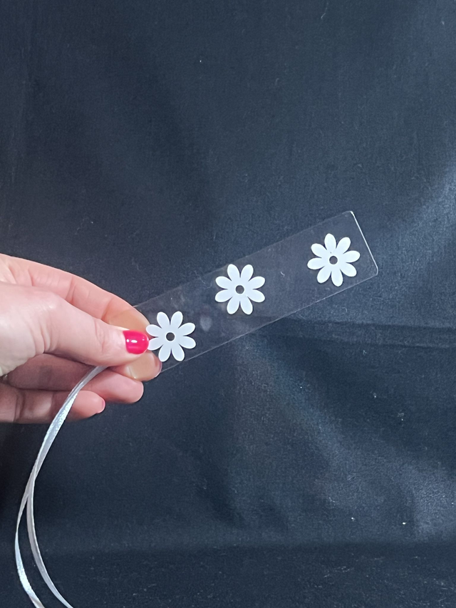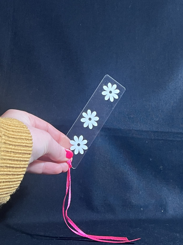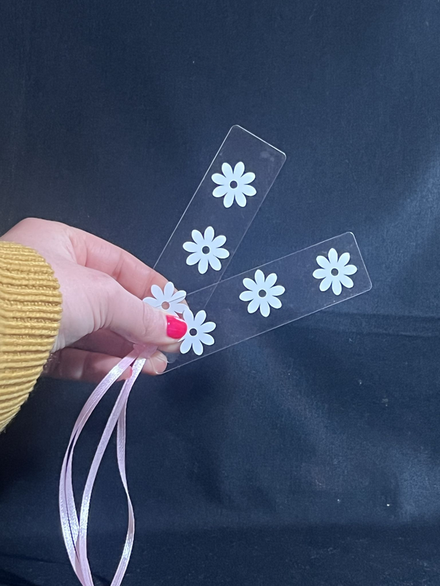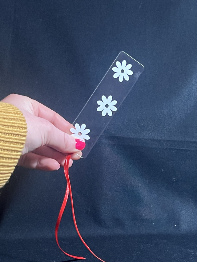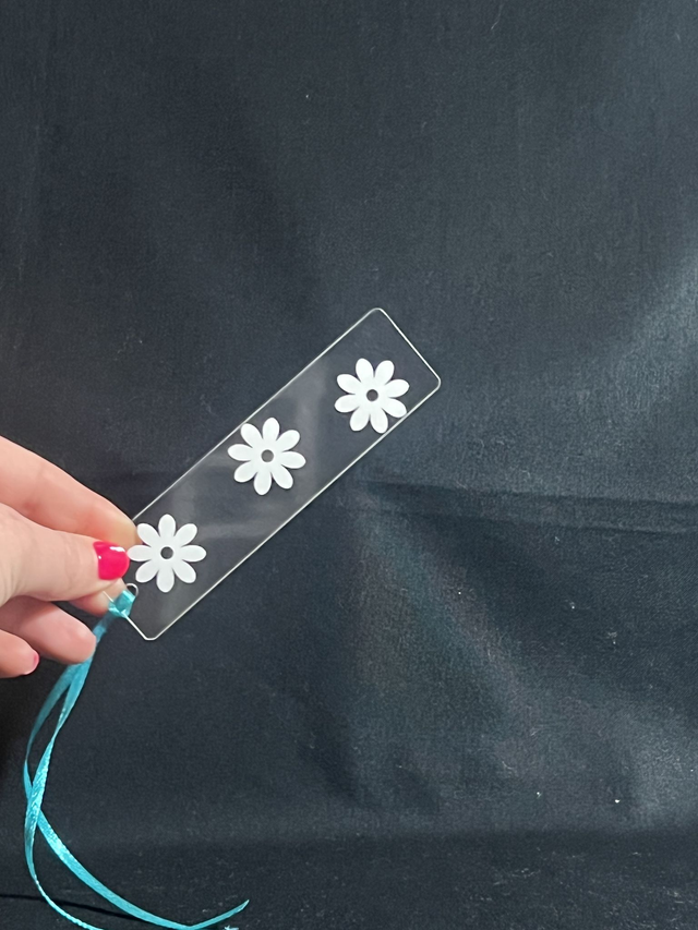 Introducing our intricately designed acrylic bookmark with 3 stunning flowers and eye-catching vinyl decals that will elevate your reading experience. Each bookmark features a ribbon for easy identification and a variety of different coloured ribbons to choose from. By using up scraps of vinyl, we have created a sustainable product that is both beautiful and environmentally conscious. Not only is this bookmark functional for keeping your place, but it's also a perfect gift for book lovers. Enjoy the benefits of a durable, long-lasting bookmark that will make your reading time even more enjoyable.