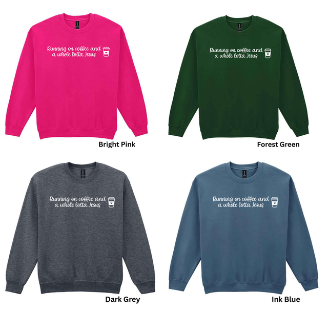 Get ready to tackle your day with our "Running on Coffee and a Whole Lotta Jesus Jumper"! Available in sizes Small to 3XL, this jumper is made from a comfortable blend of 50% cotton and 50% polyester. Perfect for coffee lovers and those who draw strength from their faith, this jumper is Made to Order, guaranteeing a personalized touch. Please note that shipping may be delayed due to customisation, but rest assured it's worth the wait. Embrace your love for coffee and Jesus while staying cosy and stylish in this versatile jumper.