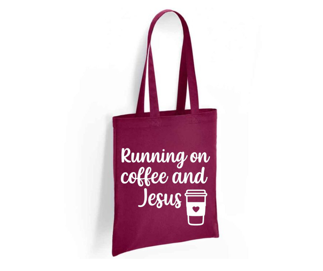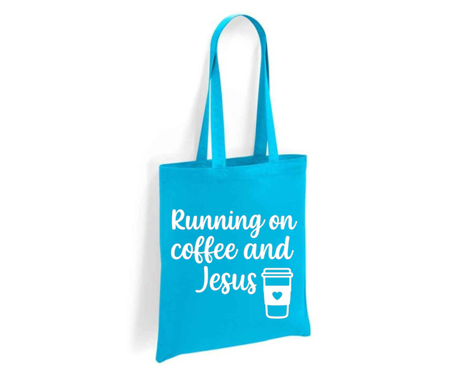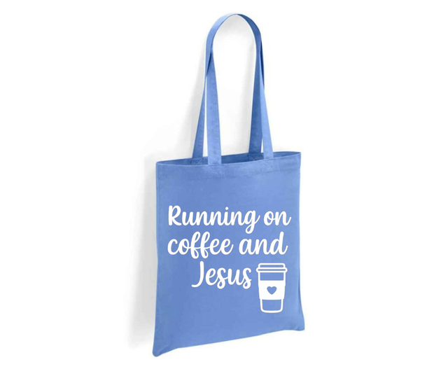 Running on Coffee and Jesus Tote Bag