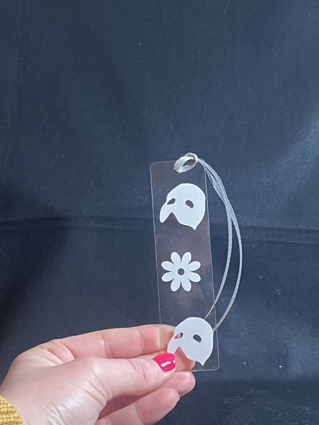 Introducing our versatile acrylic bookmark, adorned with a beautiful mix of theatre masks and a flower design or theatre masks designs, perfect for any booklover and theatre lover. Each bookmark is uniquely made with vinyl decals and different coloured ribbons, ensuring no two are the same. Using up scraps allows us to provide an eco-friendly product. The addition of a ribbon allows for easy marking of your current read, while the acrylic material ensures long-lasting use. Whether it's for personal use or as a gift for a friend, our theatre mask and flower or theatre masks acrylic bookmarks are sure to add a touch of elegance to any page.